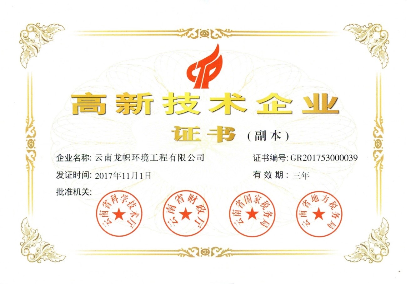 公司擁有自主知識產(chǎn)權(quán)水處理專利14項(xiàng),其中發(fā)明專利2項(xiàng)。2017年被認(rèn)定為國家高新技術(shù)企業(yè)、國家科技型中小企業(yè),并成功通過質(zhì)量管理體系認(rèn)證考核取得ISO9001質(zhì)量管理體系認(rèn)證證書。